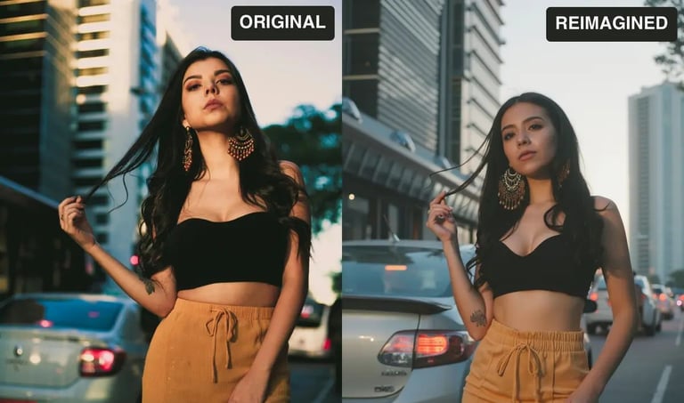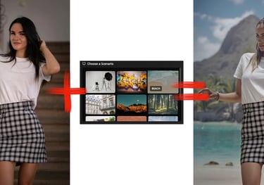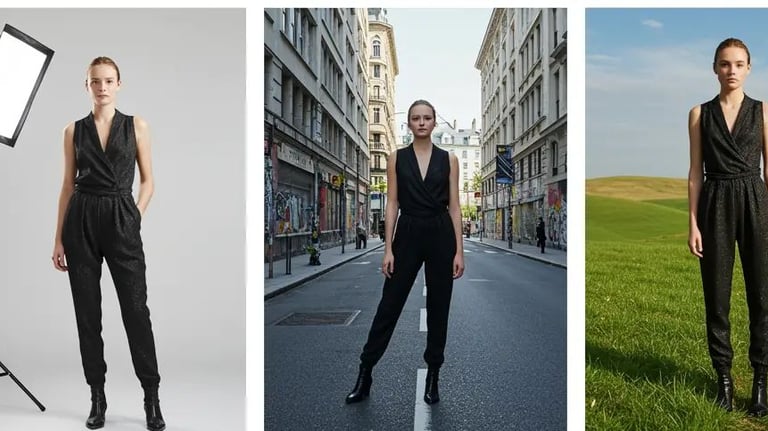 Swap the model or background in a photo while keeping the outfit and pose intact.